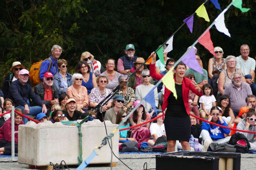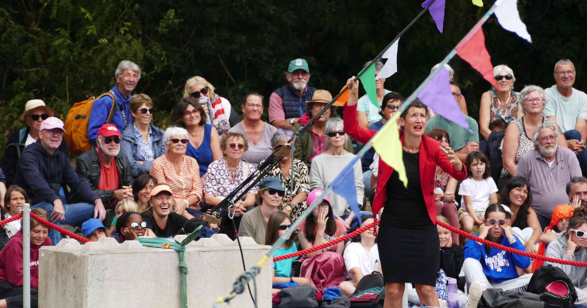 Malgré un ciel bien gris et changeant, dans cette lumière mouvante je reconnais les visages levés et les regards éblouis dans la foule de spectateurs qui a envahi le boulodrome de Moëlan-sur-Mer pour assister et partager une inauguration haute en couleurs.